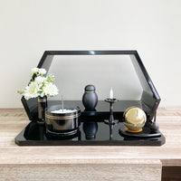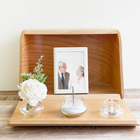 ミニ仏壇|祈りのステージ・アリーナ|アンティークゴールド(花立・火立、香炉)|ホワイトブーケ付(日本製)